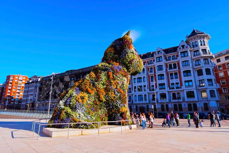 Después de desayunar pondremos rumbo hacia Bilbao, a una hora de viaje aproximadamente. Una vez allí, realizaremos un recorrido panorámico en el que pasaremos por los monumentos más importantes de la ciudad. Al terminar, podréis pasear por la explanada del Museo Guggenheim y admirar la escultura de Puppy, del artista Jeff Koons.